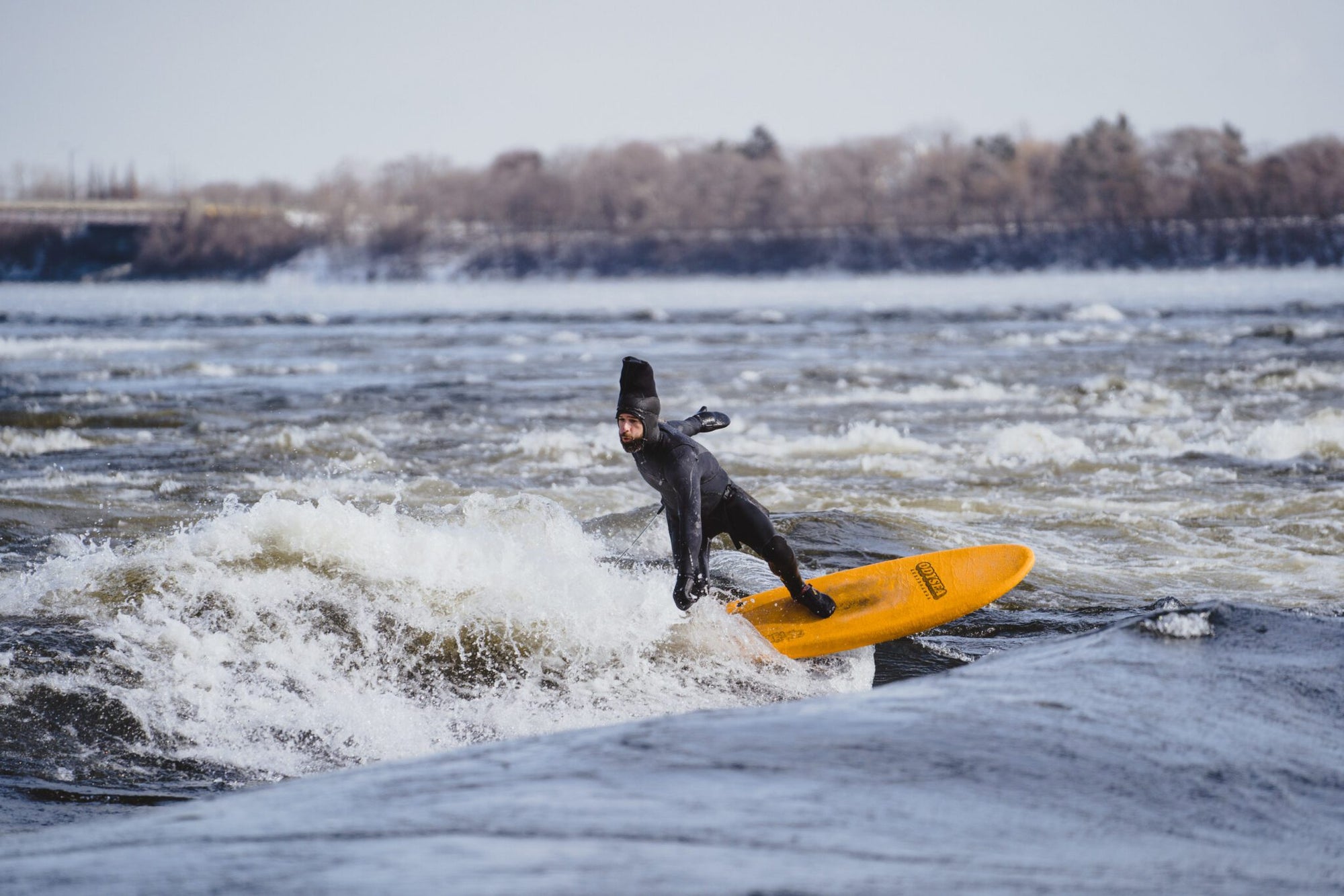 Ursprünglich aus British Columbia stammend, zog Orion mit seiner Prog-Jazz/Hip-Hop-Band The OM Sound nach Montreal, um die lebendige Kunstszene der Stadt zu erkunden. Er war begeistert, in der Nähe seines neuen Zuhauses zahlreiche Weltklasse-Flusswellen zu entdecken. Heute ist er vor allem dafür bekannt, der extremen Kälte zu trotzen — er surft regelmäßig im Winter die Stromschnellen des St. Lawrence River und weicht Eisbergen mit einem dicken Eisbart aus.